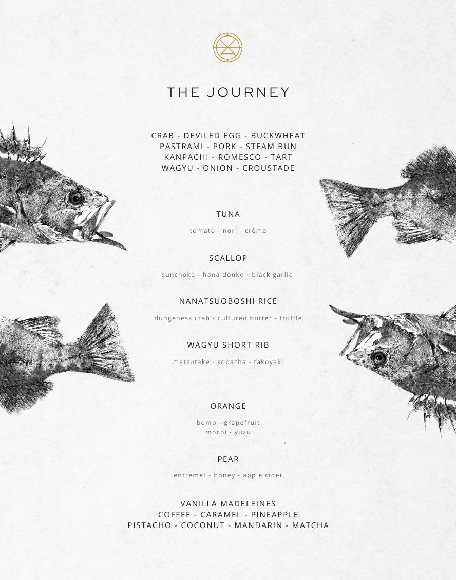 The Journey will offer four snacks, four savory courses, one plated sweet course, and our signature magic box! The Journey has been curated for our guests looking to enjoy our traditional tasting menu and will captivate you for a little over 2 hours.