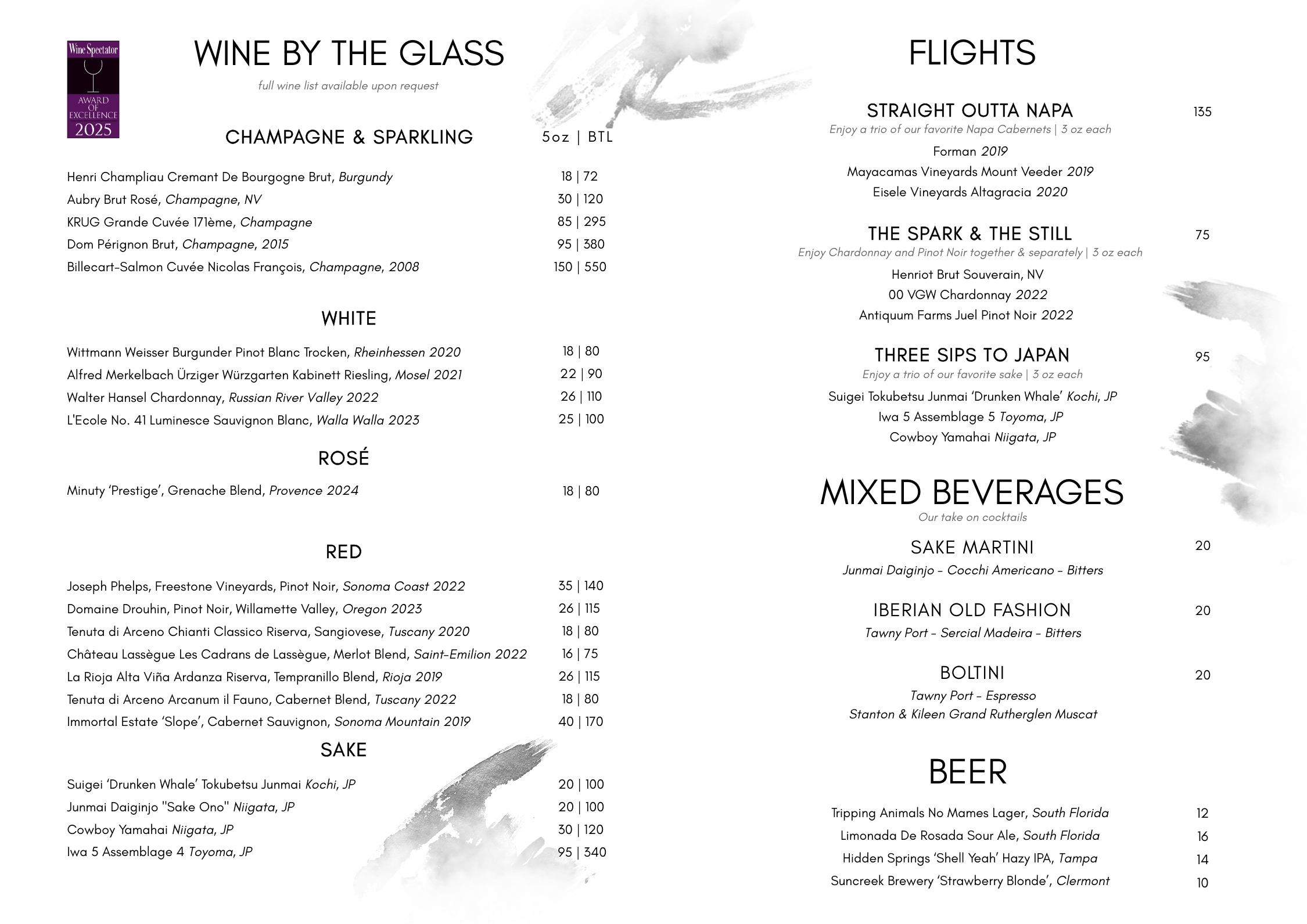 Menu is subject to change based on the availability and seasonality of ingredients.
